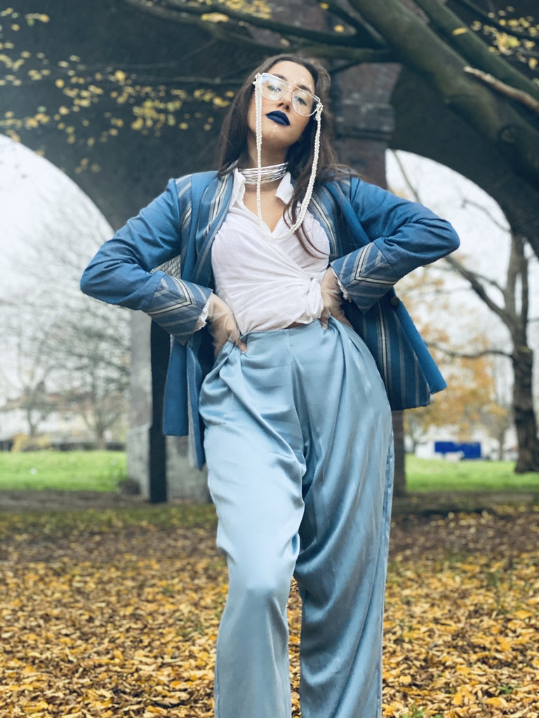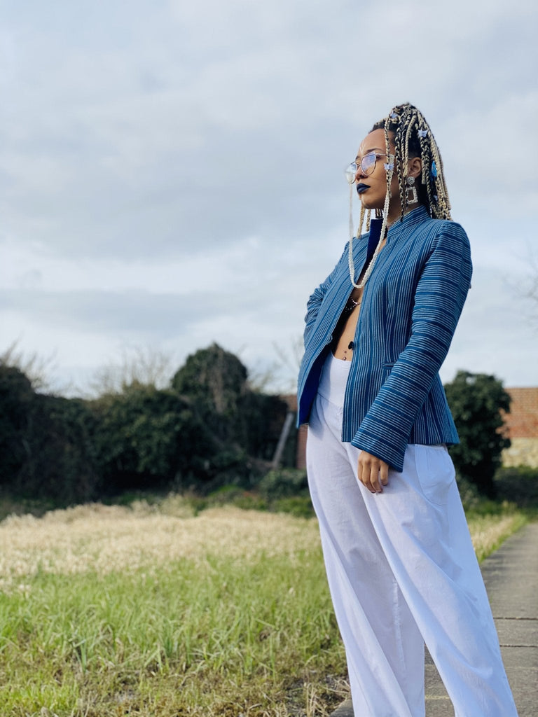 Grey Pin-Stripe Flax Oversized Shirt + Trouser Co-ord