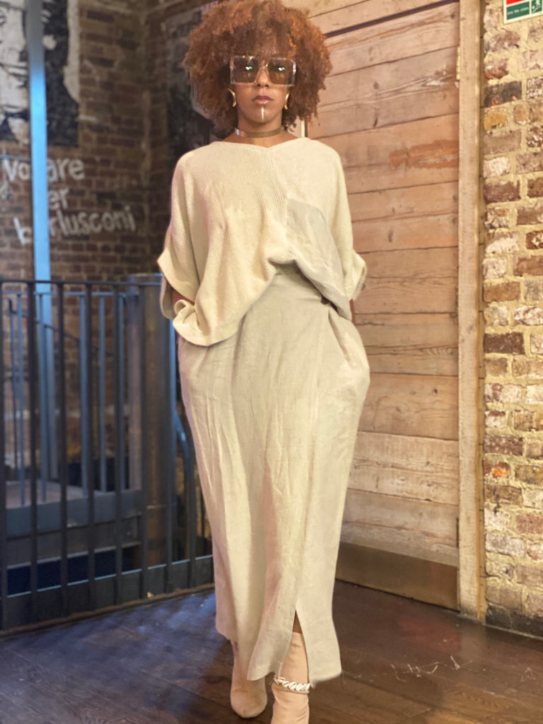 Cream Bombyx Mori Shirt/Blouse + Trouser Co-ord
