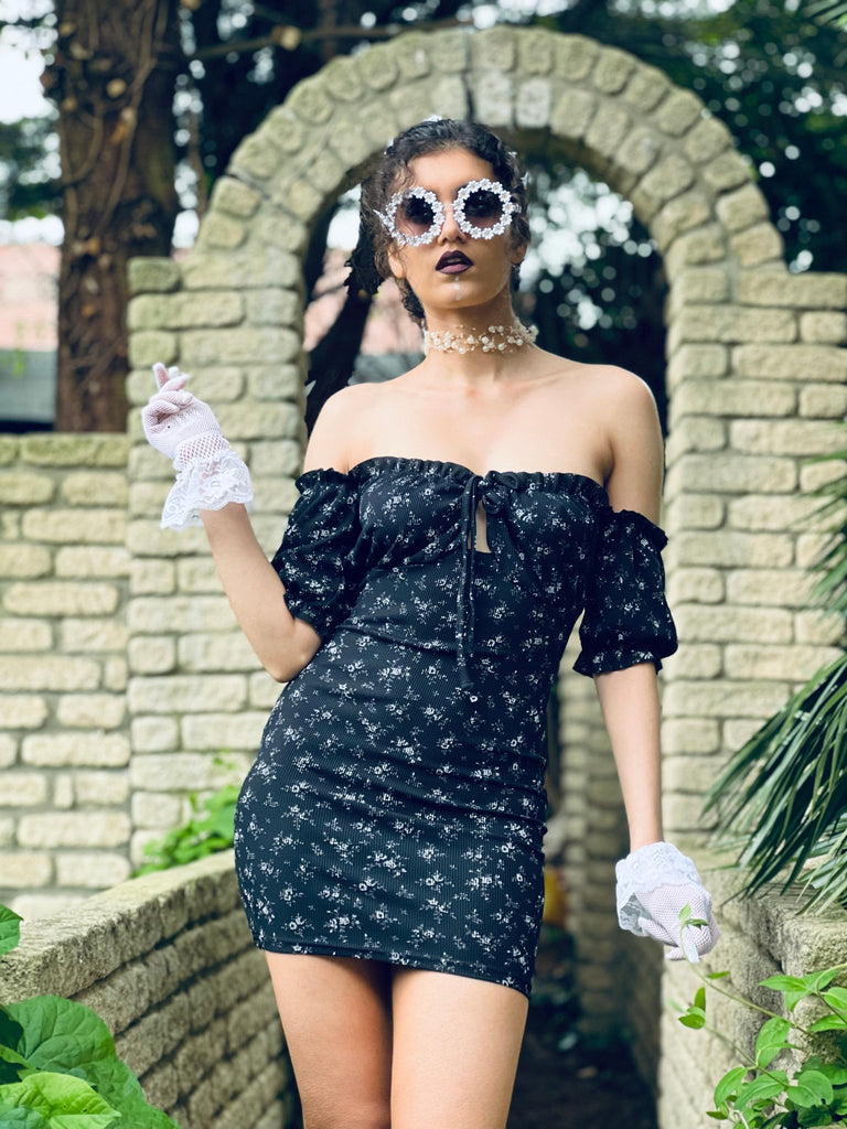 Dark Caramel Tapa Print Off-Shoulder Dress