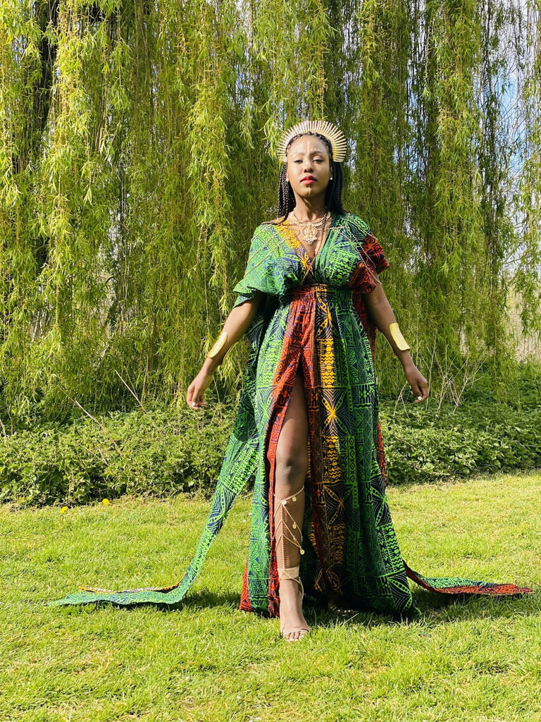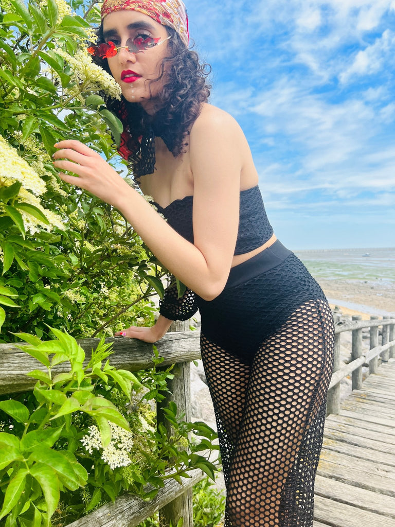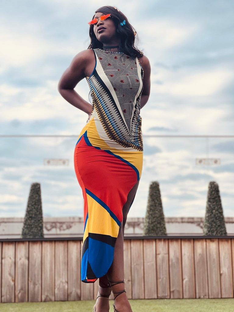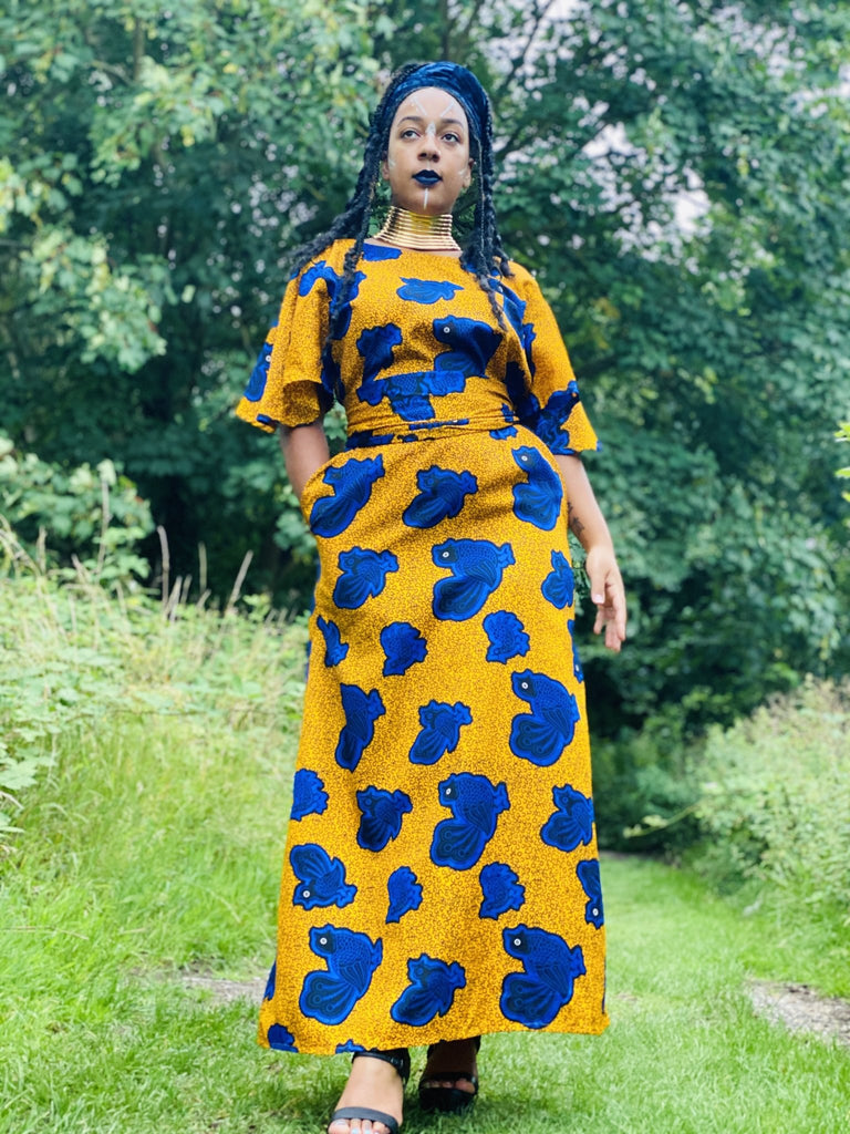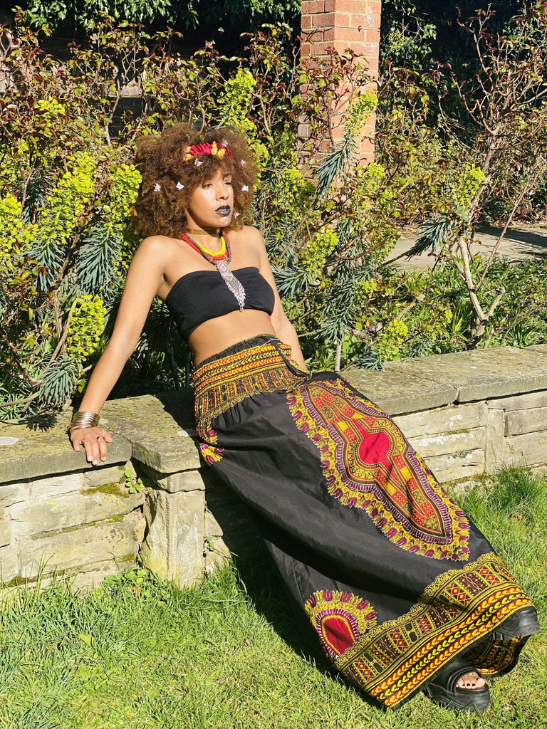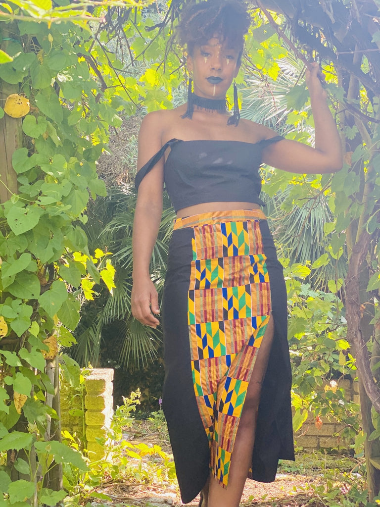 Black Kente Goddess Fishtail Skirt + Crop Co-ord