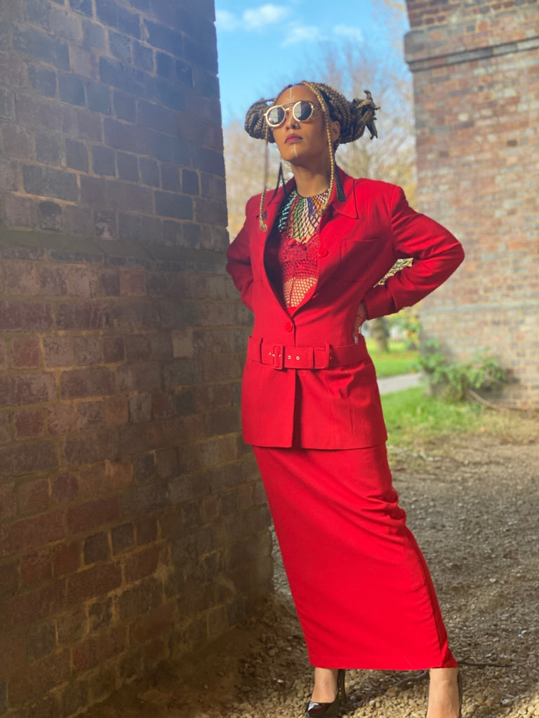 Divine Red Fishtail Skirt + Crop Top Co-ord