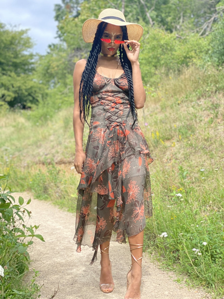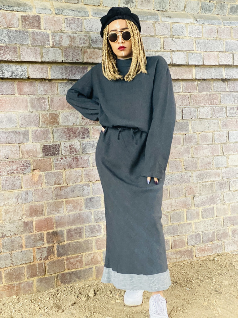 Dark Fantasy Maxi Skirt + Drawstring Crop Hoodie Co-ord