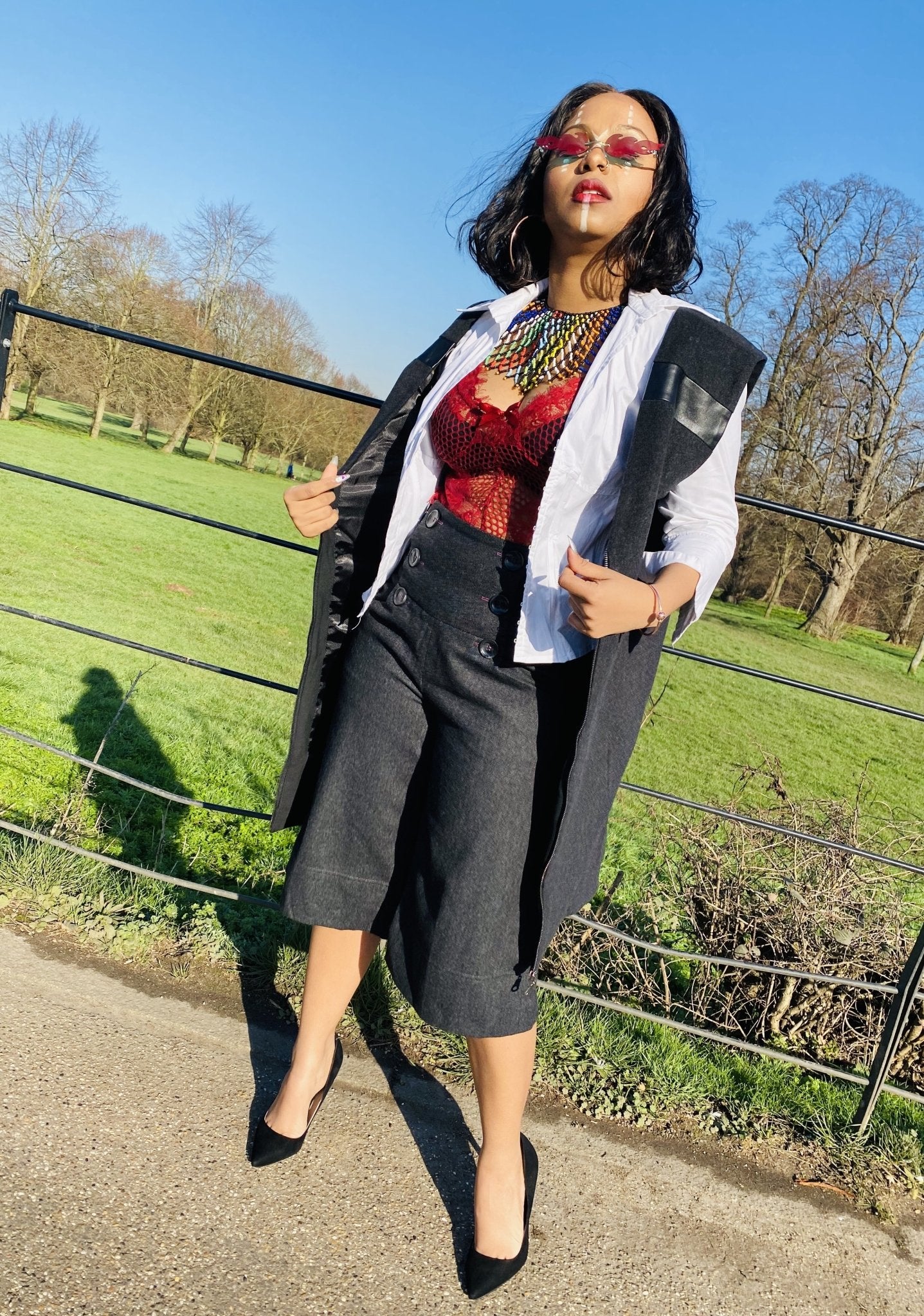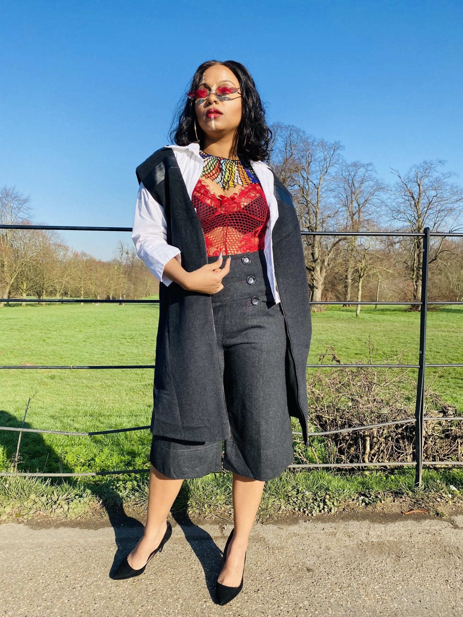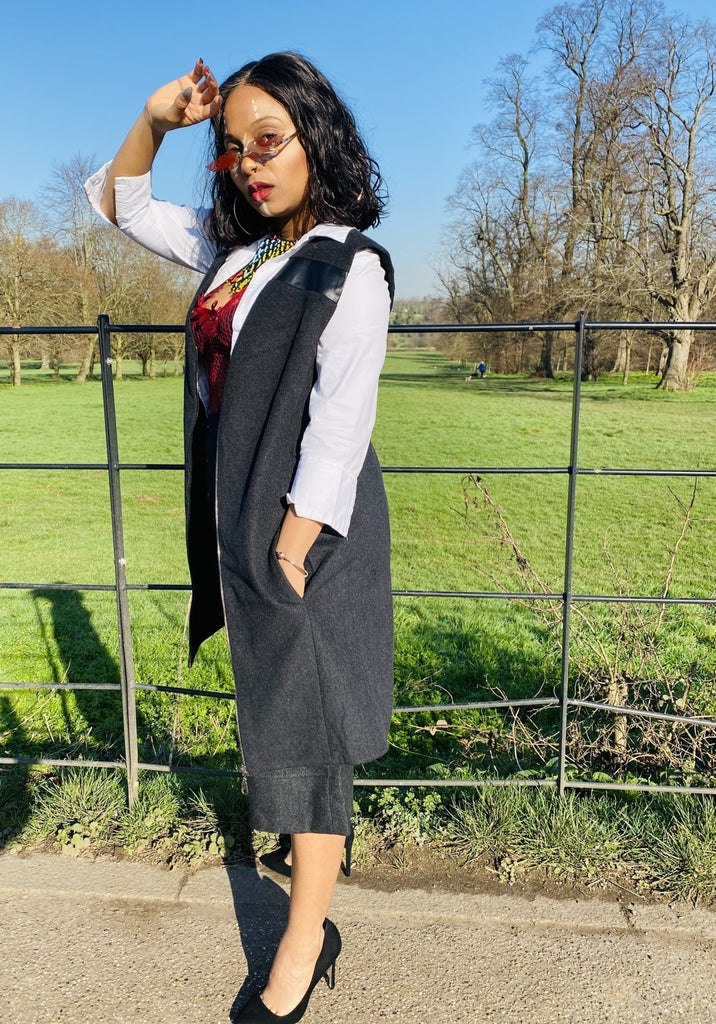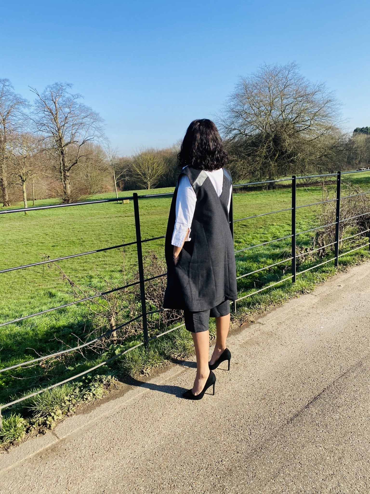 Matching Long Zip Vest from Materiel and Dark Grey Wool River Island Culottes is the perfect combo for the Office and Meetings especially in those in-between Seasons!
