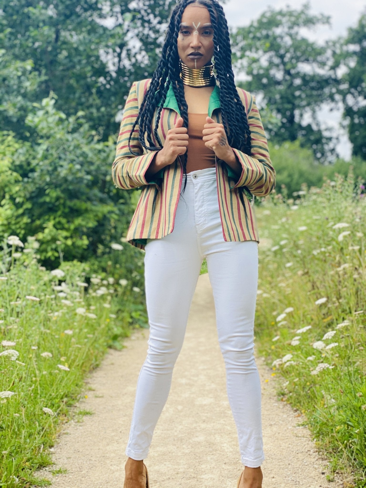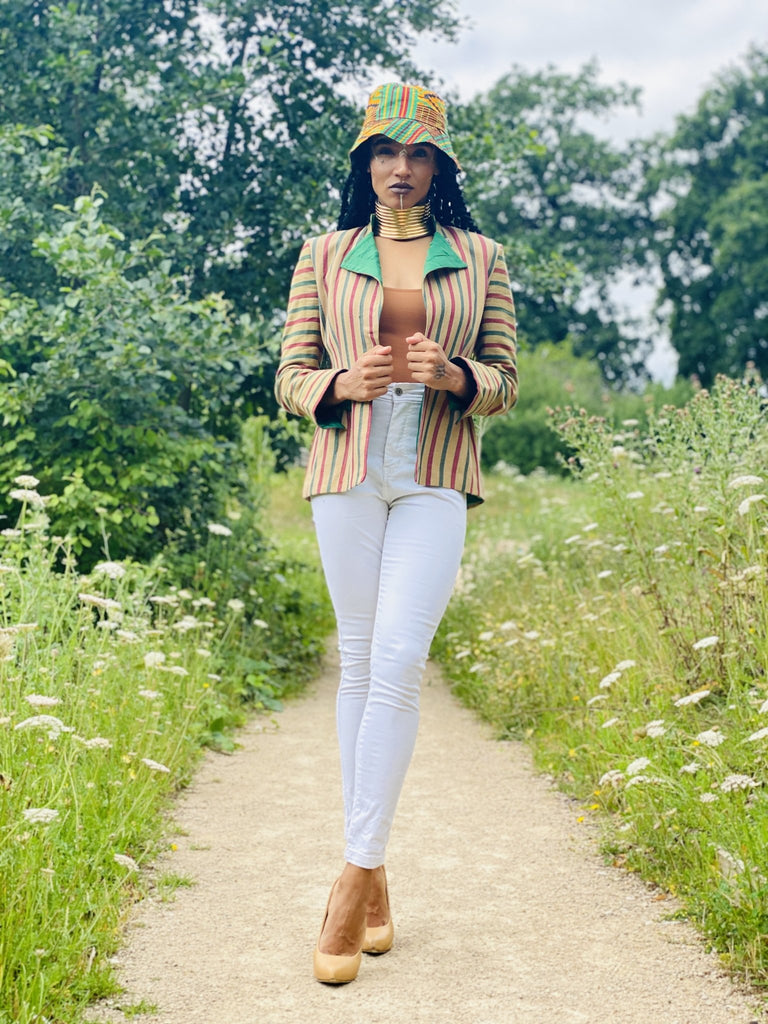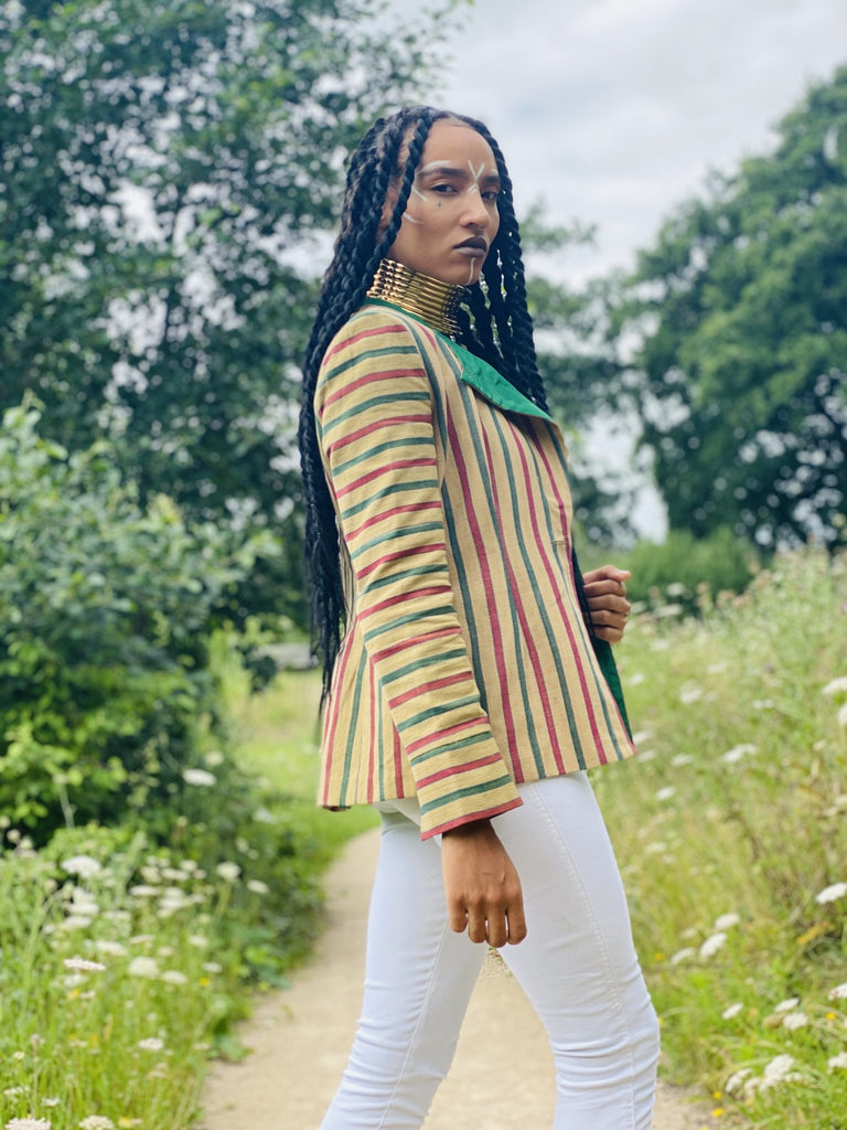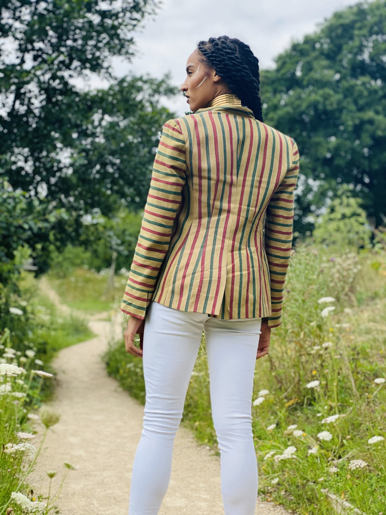 Afghan Silk Beige, Green + Red Stripe Blazer