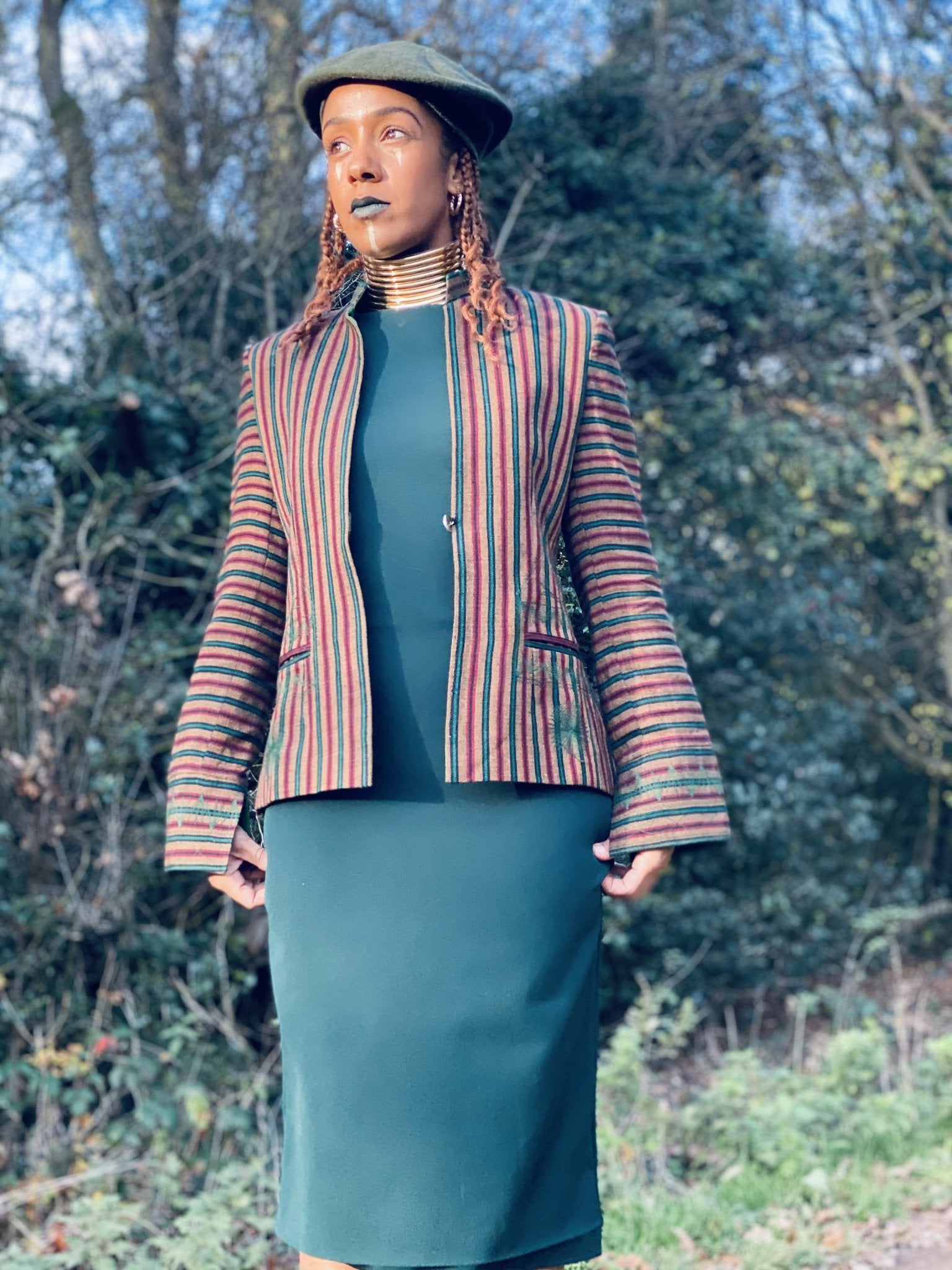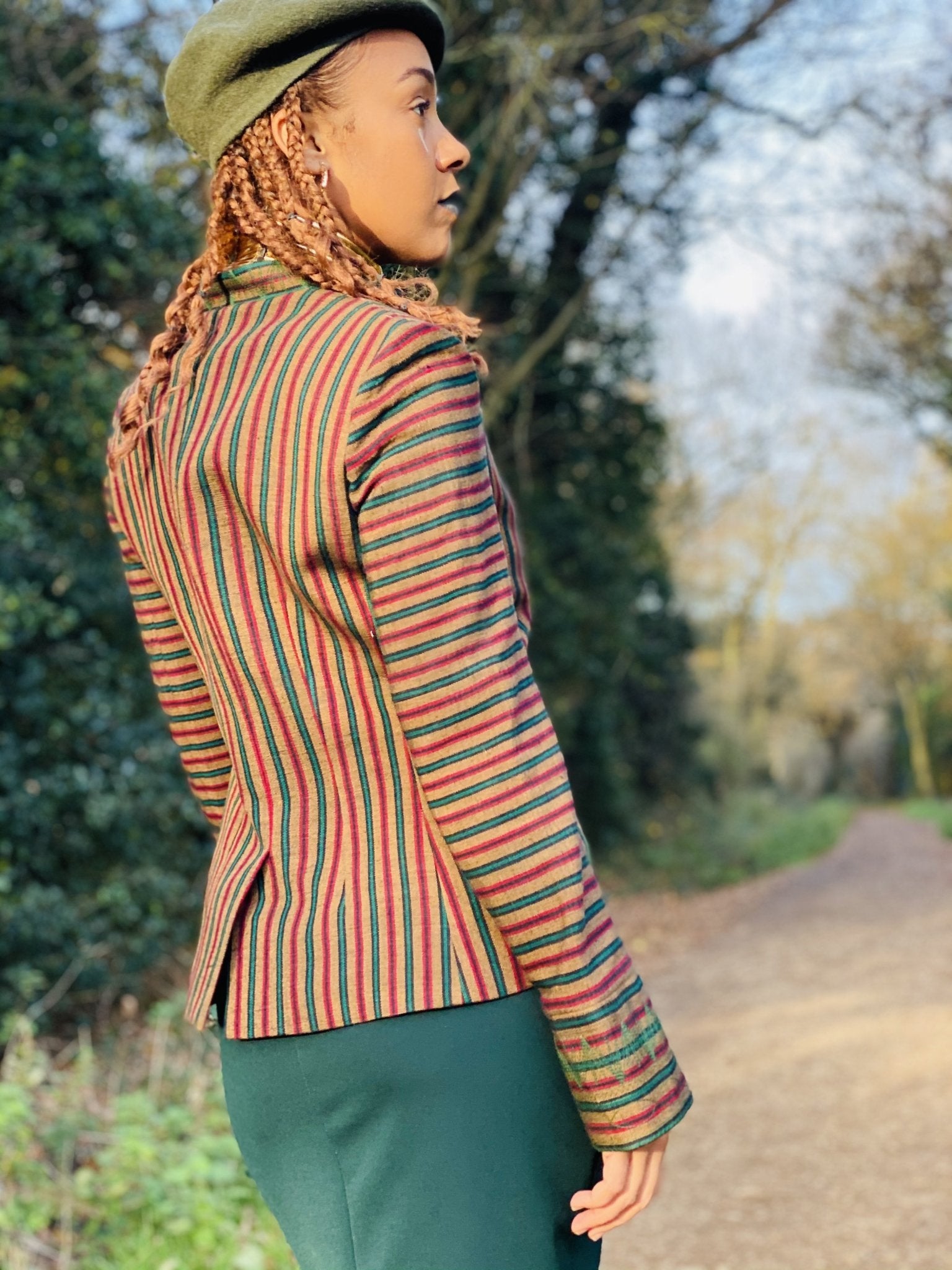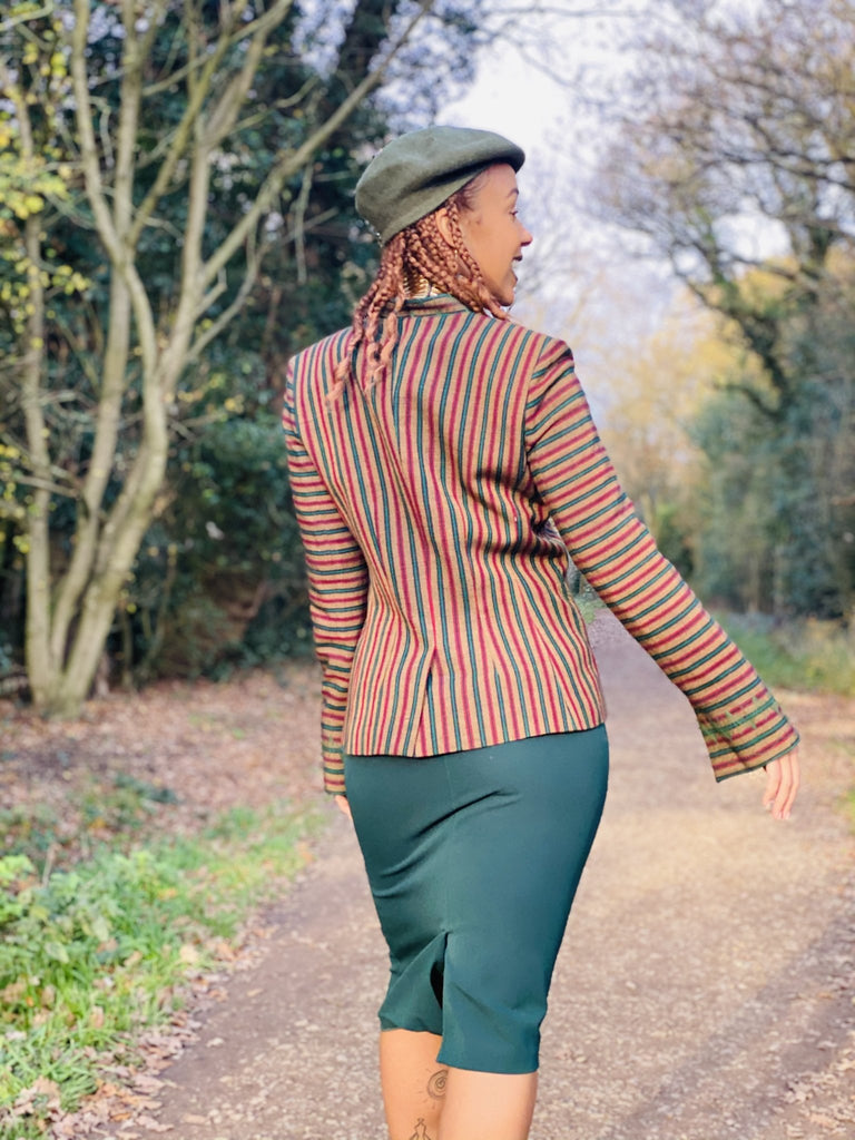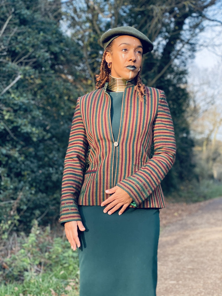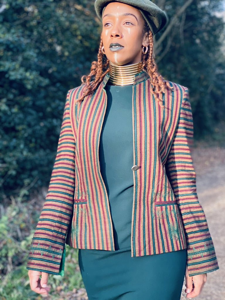 Afghan Silk Brown, Green + Red Stripe Blazer