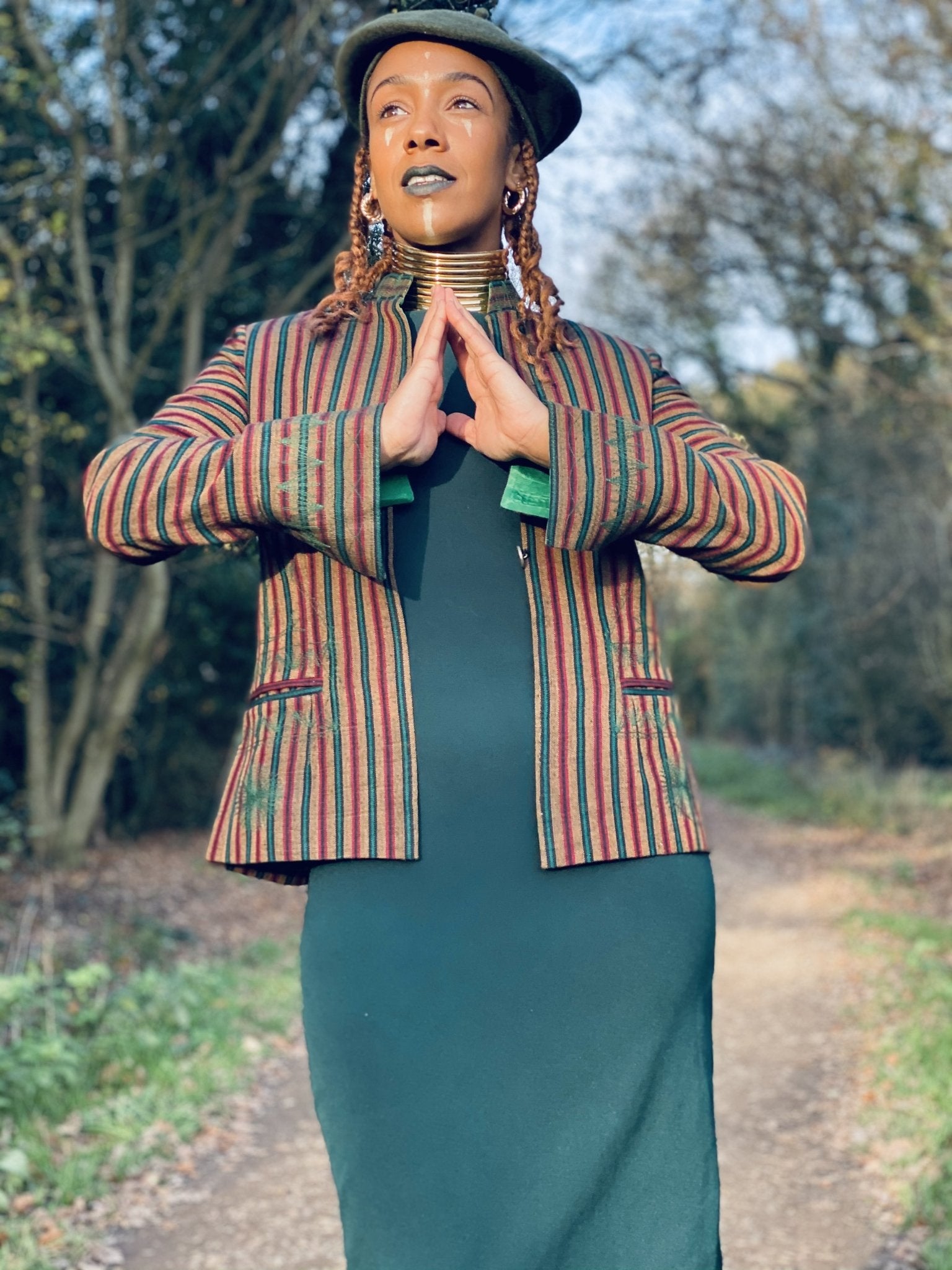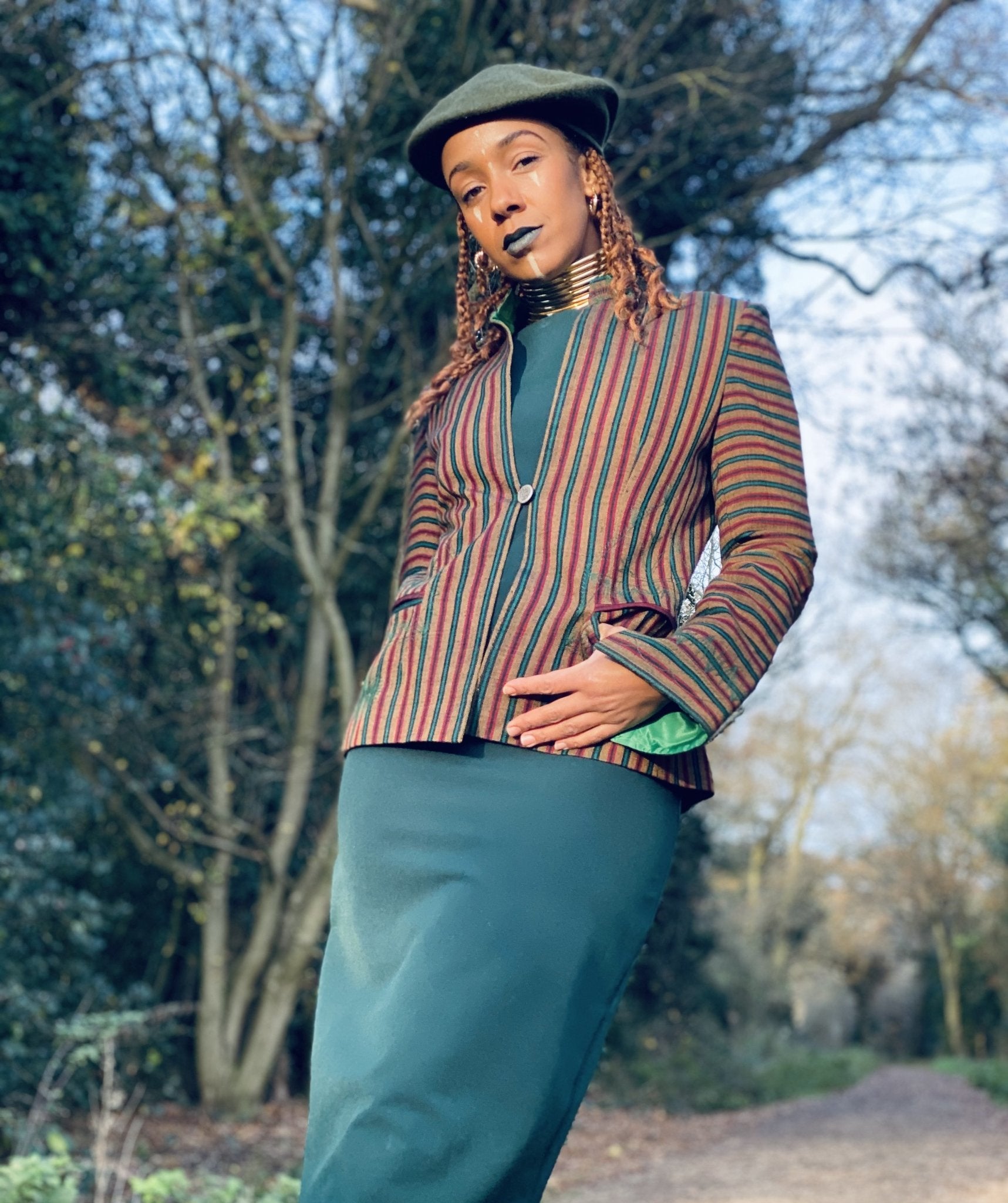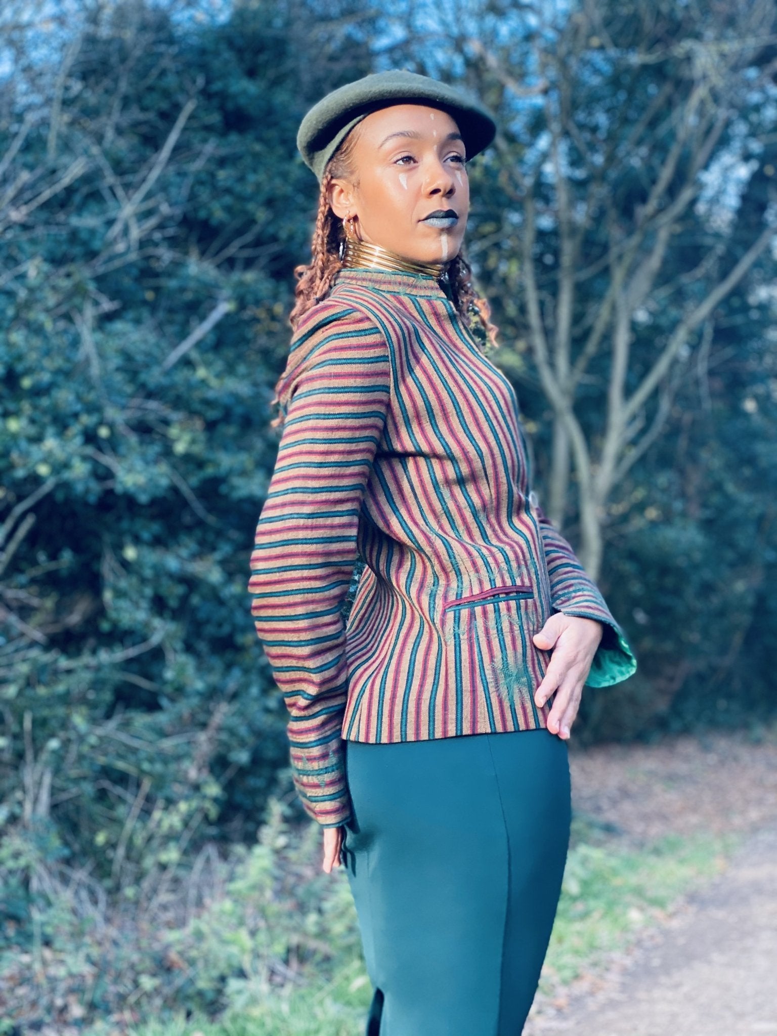 Afghan Silk Brown, Green + Red Stripe Blazer