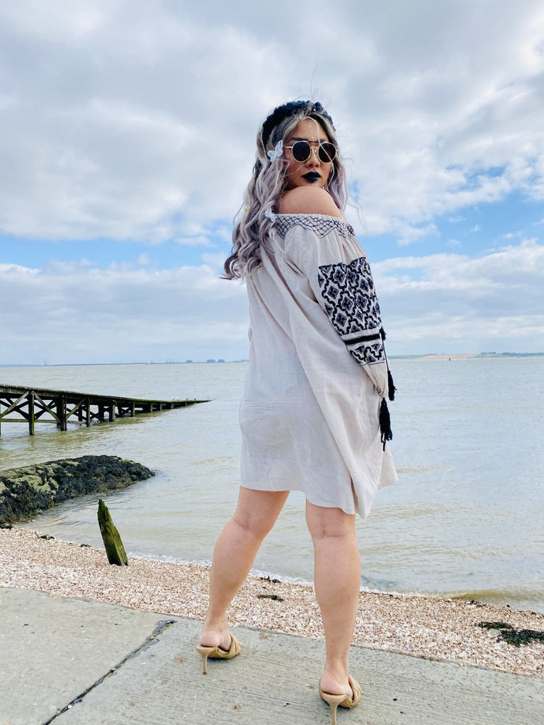 This gorgeous Beige + Black Bardot Dress from Zara is the perfect light-weight summer option for Holidays, Festivals, Brunch or any other Summer Daytime Event!