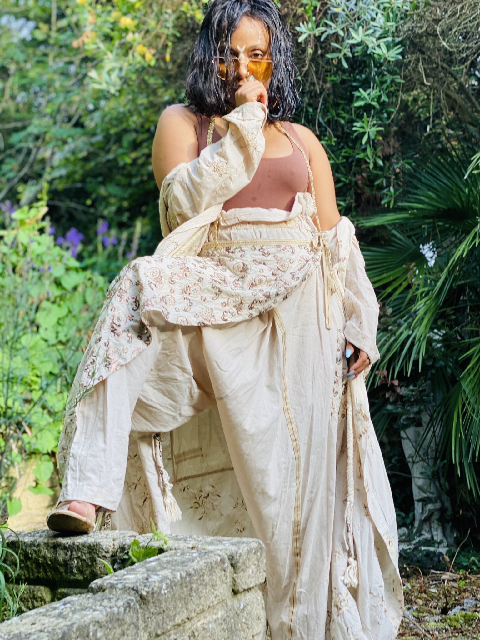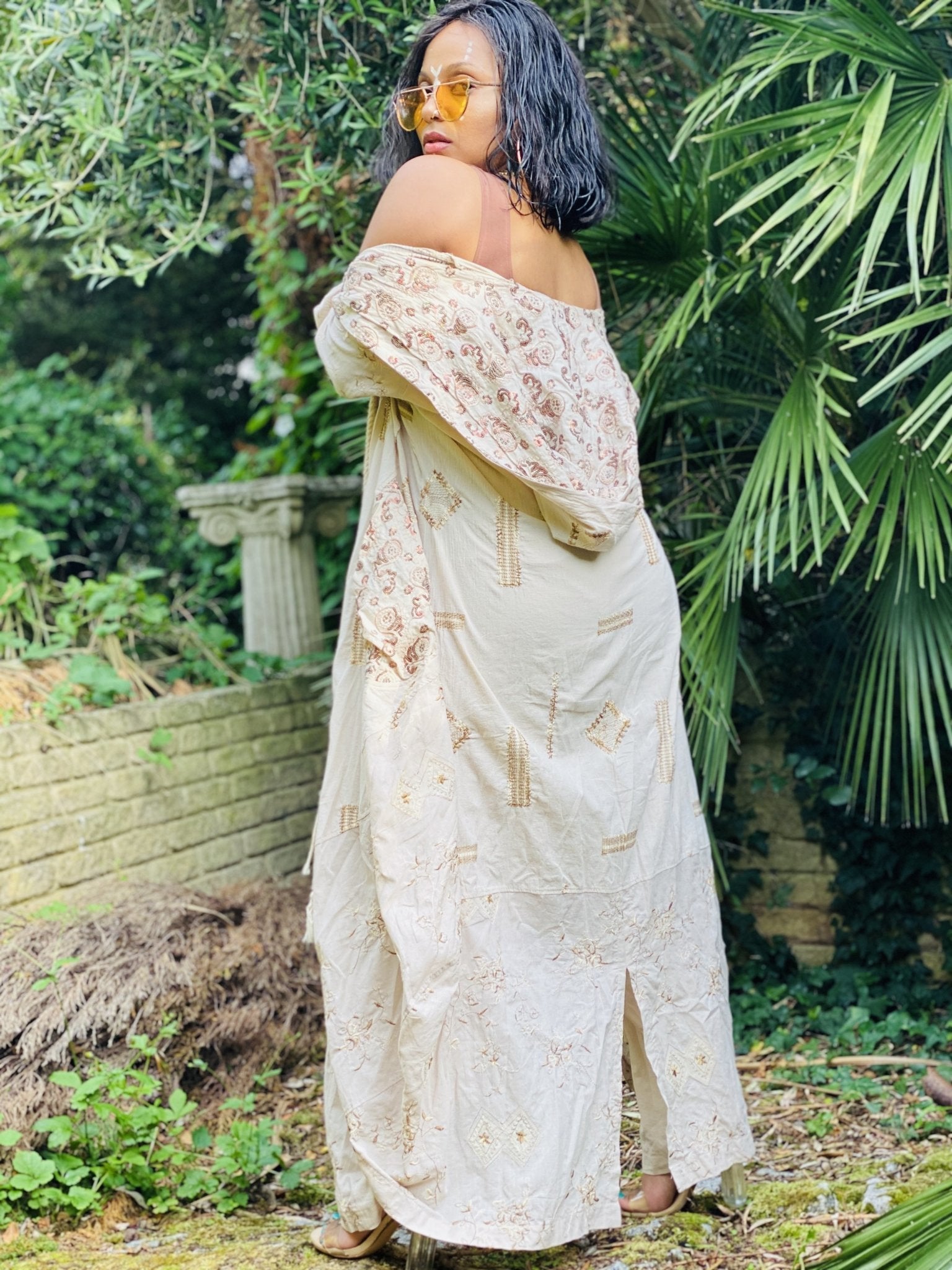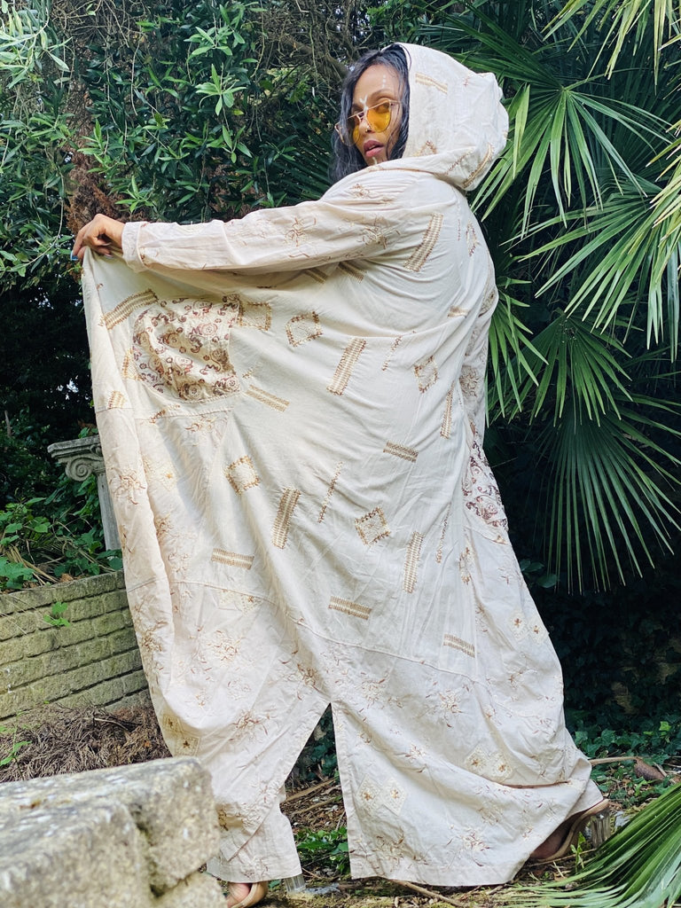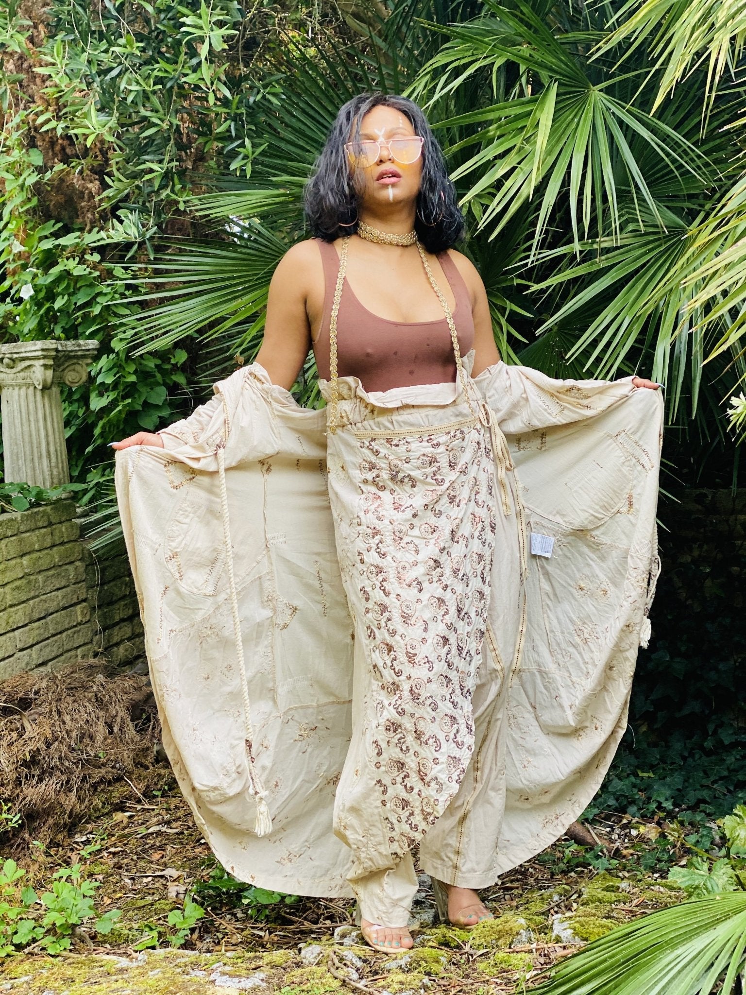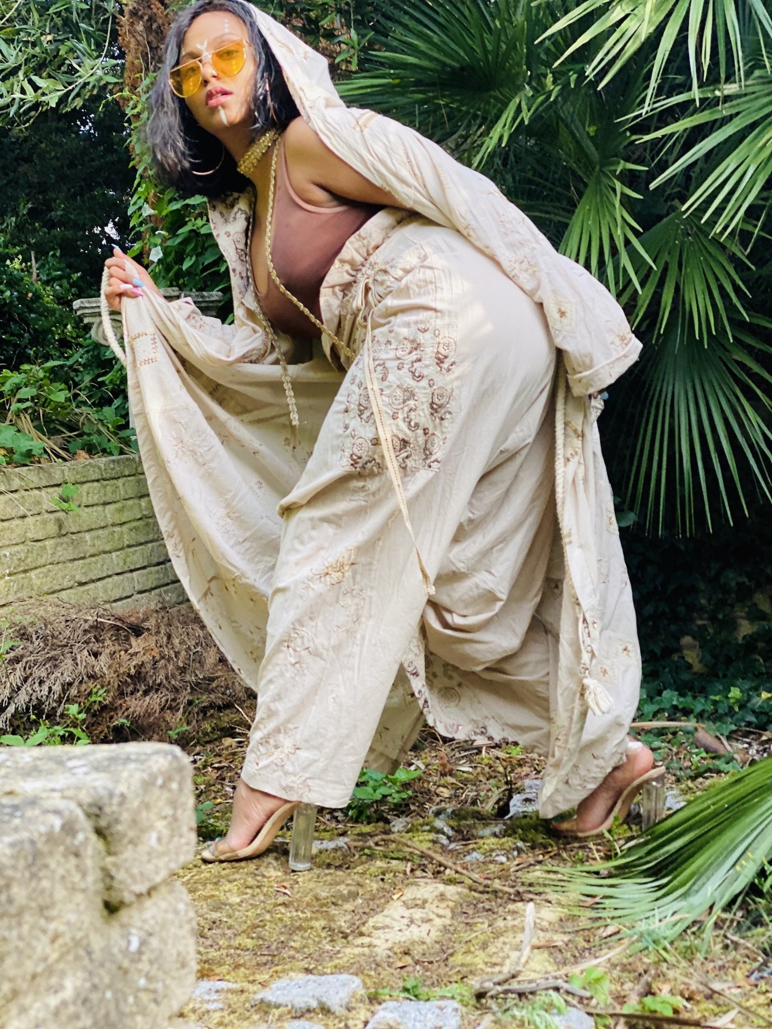 These Exclusive Vintage Beige and Bronze Sequins Aladdin Wrap Trousers and matching Hooded Maxi Coat from Caraclan is a super fun + stylish 2-piece for any Special Event, Brunch, or anywhere you simply wanna turn heads and stand out from the crowd!