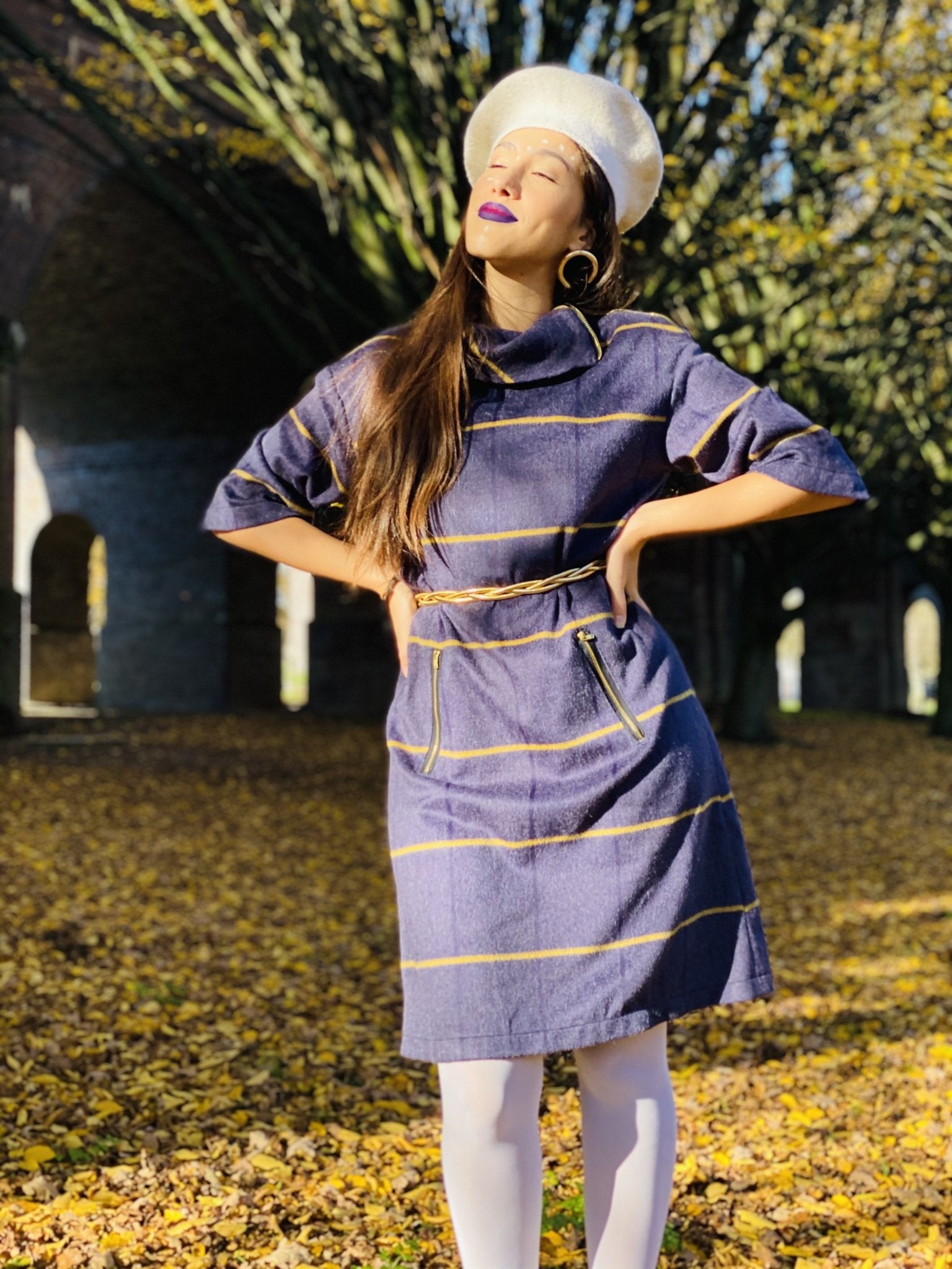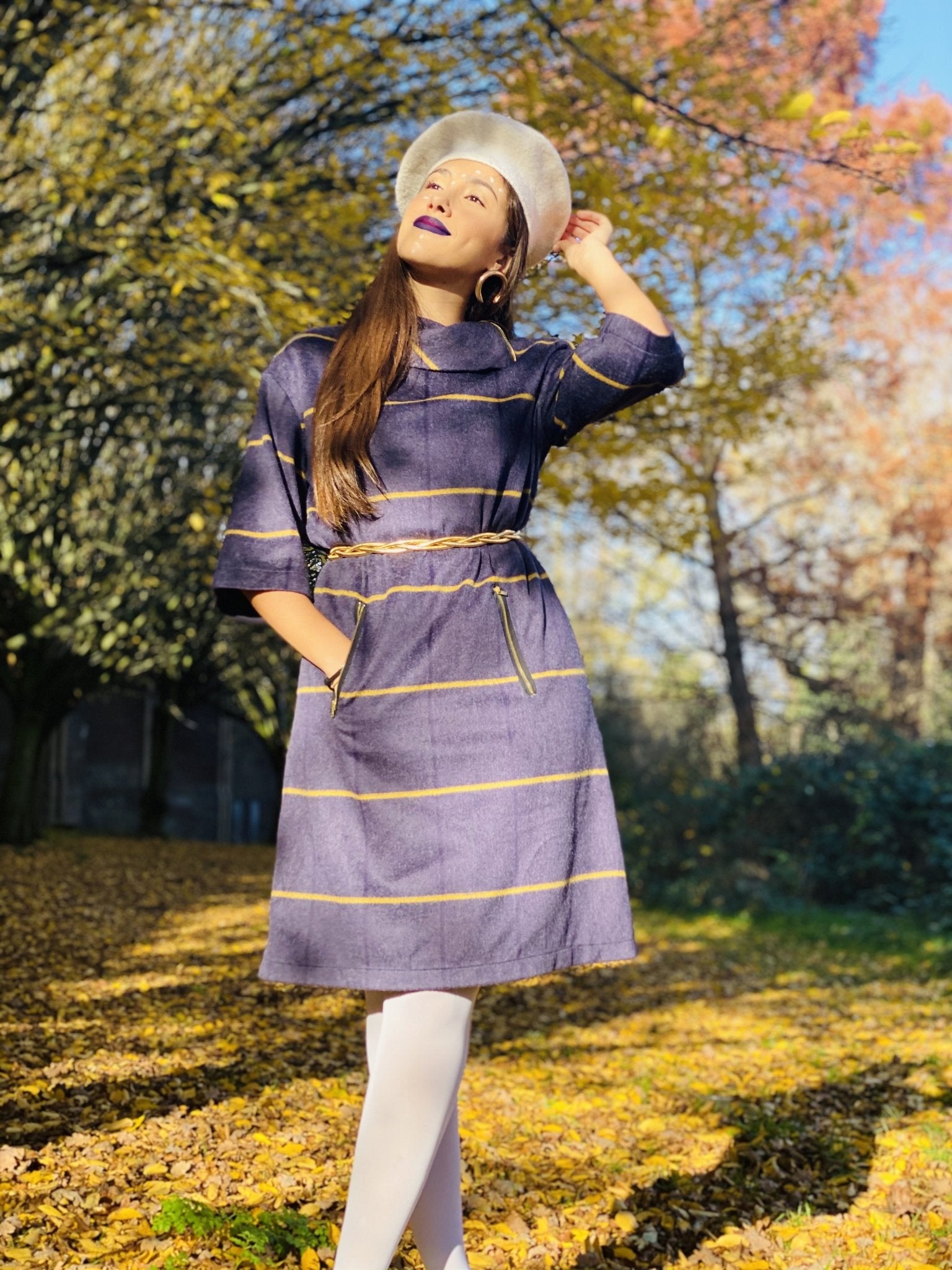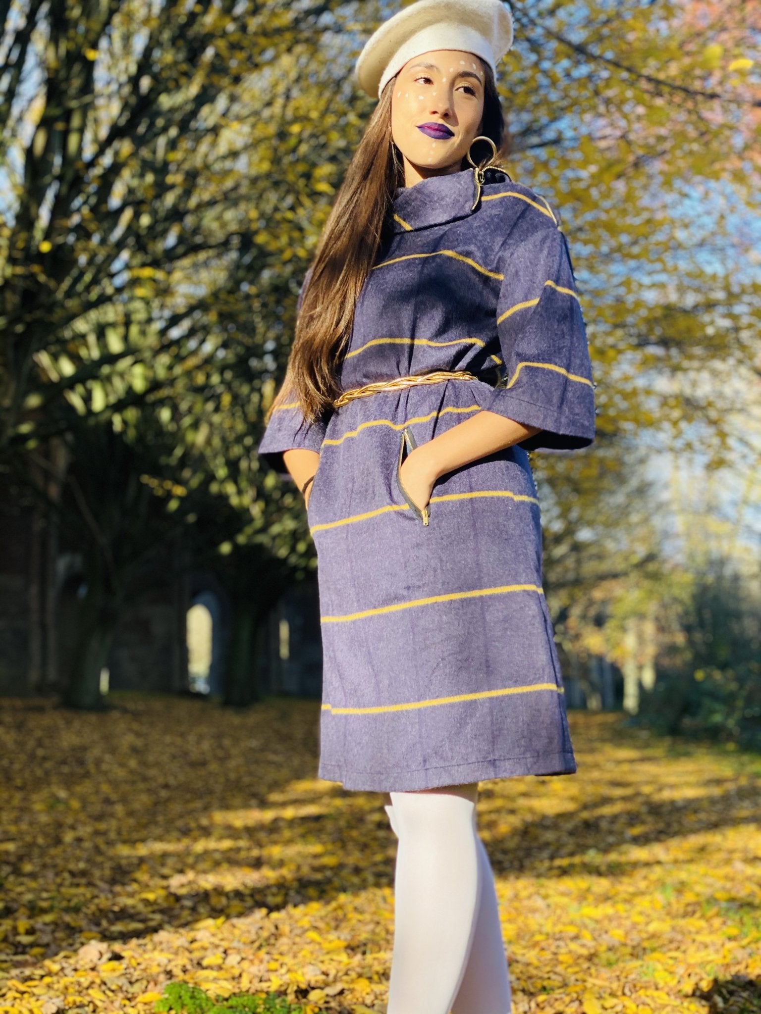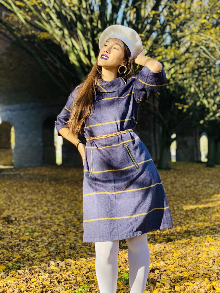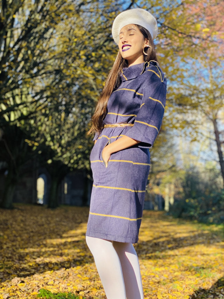 This incredible Handmade Purple and Yellow Stripe Polo Mini Dress by Dika is perfect for any Special Occasion, Work Meeting or even Lounging around at home!